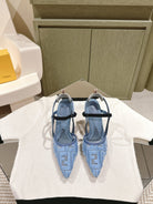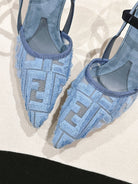 FENDI COLIBRÌ HIGH-HEELED SLINGBACKS 75MM IN SKY BLUE FABRIC