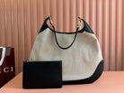 BODY MEDIUM SHOULDER BAD 49 IN NATURAL CANVAS AND BLACK CALFSKIN GOLD HARDWARE
