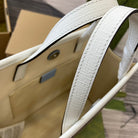 CHILDREN'S PUPPY PRINT TOTE BAG 28 IN BEIGE CANVAS AND WHITE CALFSKIN TRIM