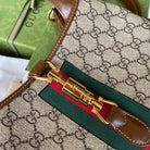 gg jackie small 28cm beige monogram canvas brown calfskin