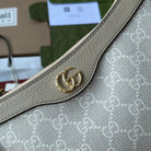 OPHIDIA SMALL SHOULDER BAG 25 IN WHITE CANVAS AND OAT LAMBSKIN GOLD HARDWARE