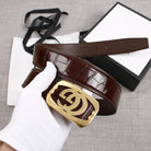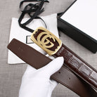G BELT GOLD BUCKLE CROCODILE POLISHED BROWN 3.8CM