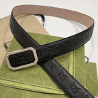 G BELT SILVER SQUARE BUCKLE BLACK LEATHER 3.5CM