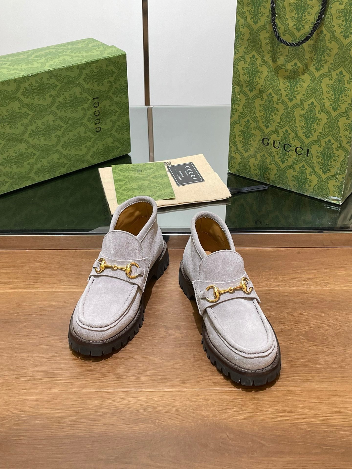 GG Ankle Boot With Horsebit 15 Grey Suede