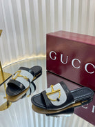 GC 25 Horsebit GG Sandals Black Canvas Sheepskin 294664