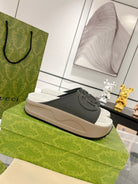 GC 25 Interlocking G 50mm Slide Sandal Jet Black White Cowhide 292381