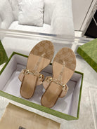 GC Horsebit Thong Sandals Beige Canvas Leather 292475
