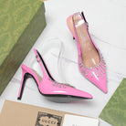 GG CRYSTAL HIGH HEEL SANDAL BRIGHT PINK LAMBSKIN