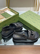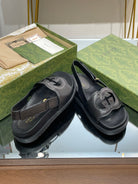 GG INTERLOCKING G CUT OUT SANDAL BLACK LAMBSKIN