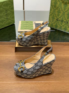 GG WEDGE PLATFORM IN STEEL GREY MONOGRAM JACQUARD FABRIC