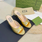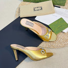 GG Women's Horsebit mid-heel slide sandal in Gold