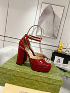 HIGH SANDAL SQUARE HEEL 12 CM IN CHERRY RED CALFSKIN