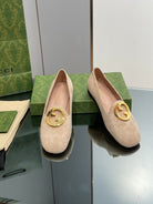 BLONDIE LOGO-PLAQUE LOAFERS IN ECRU BEIGE SUEDE