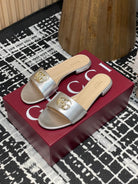 GC 25s flat sandals sliver metallic leather