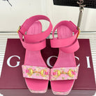 GC Floral Platform Wedge Sandal Pink Mix Flower lambskin