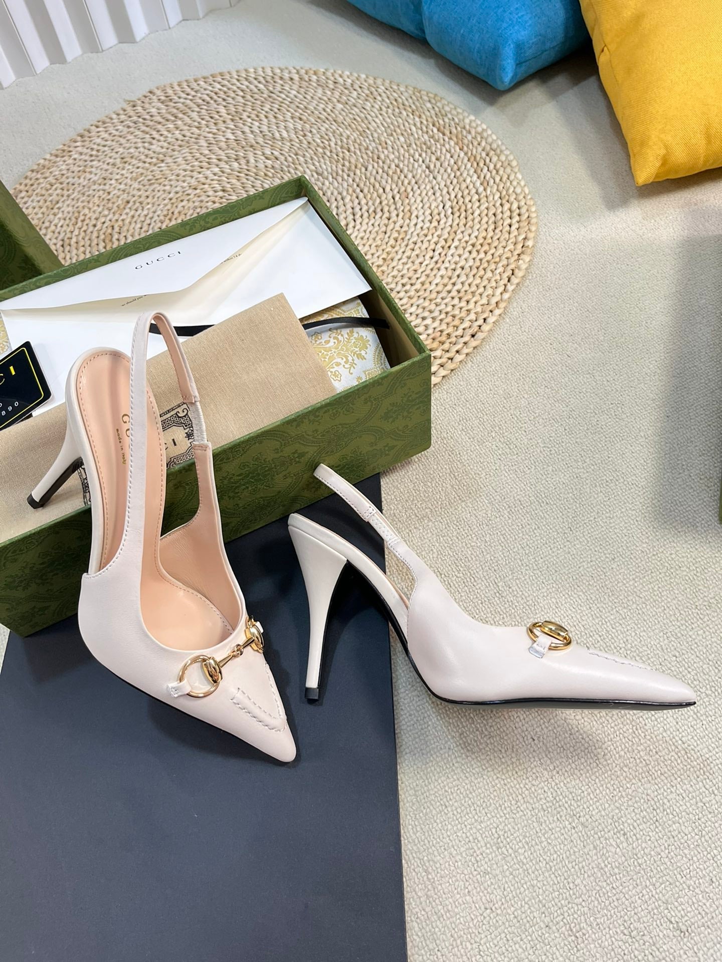 GC Horsebit Slingback Pump 100mm White Sheepskin 294568
