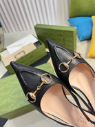 GC Horsebit Slingback Pump 10mm Black Sheepskin 294557