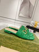 GG CHUNKY SLIDE SANDAL DARK GREEN CALFSKIN