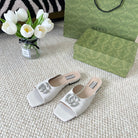 GG CRYSTAL SLIDES SANDAL WHITE CALFSKIN