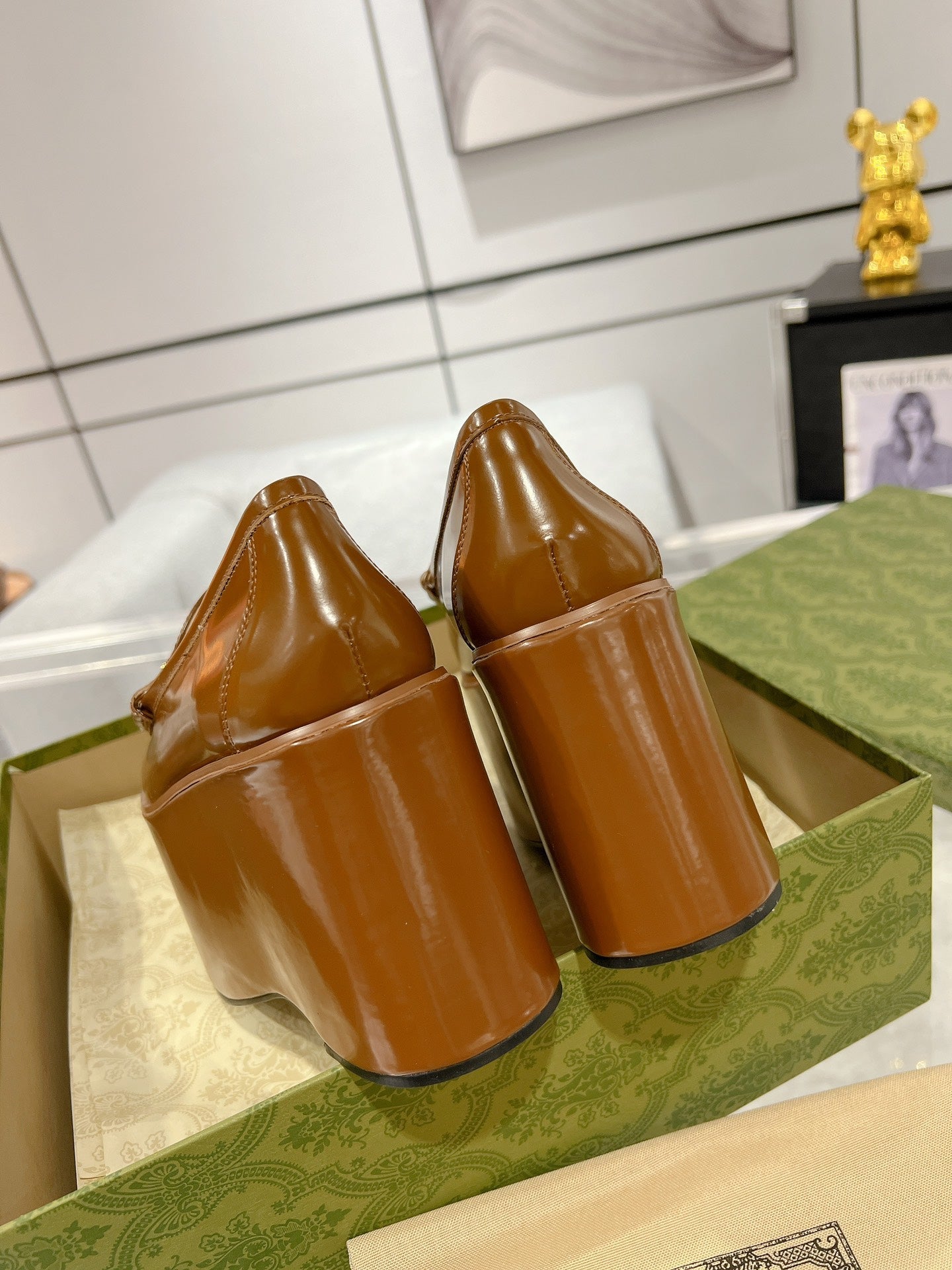 GG HORSEBIT PLATFORM LOAFER GLOSSY COPPER CALFSKIN