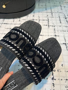 GG SLIDE SANDAL WITH GUCCI SCRIPT BLACK DENIM