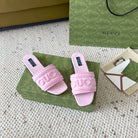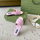 GG SLIDE SANDAL WITH GUCCI SCRIPT PASTEL PINK DENIM