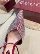 GC Crystal-Embellished Slingbacks Red Silk Sheepskin 294609
