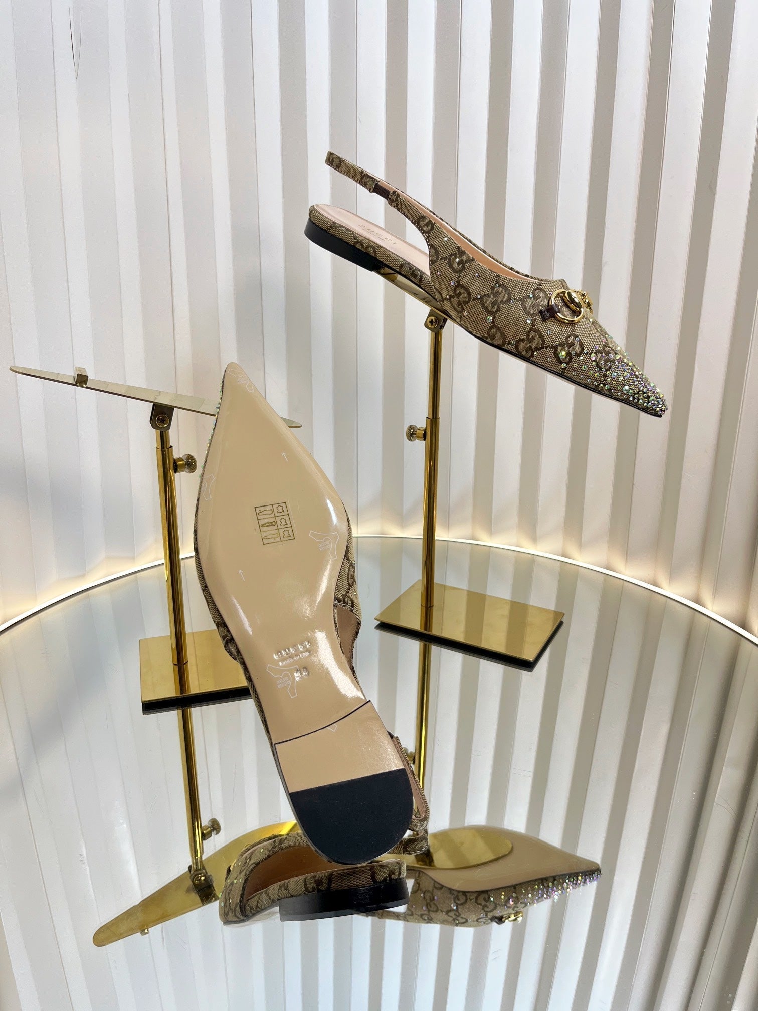GC Crystal Horsebit Slingback 10mm Beige mix Ebony Canvas lambskin 294614