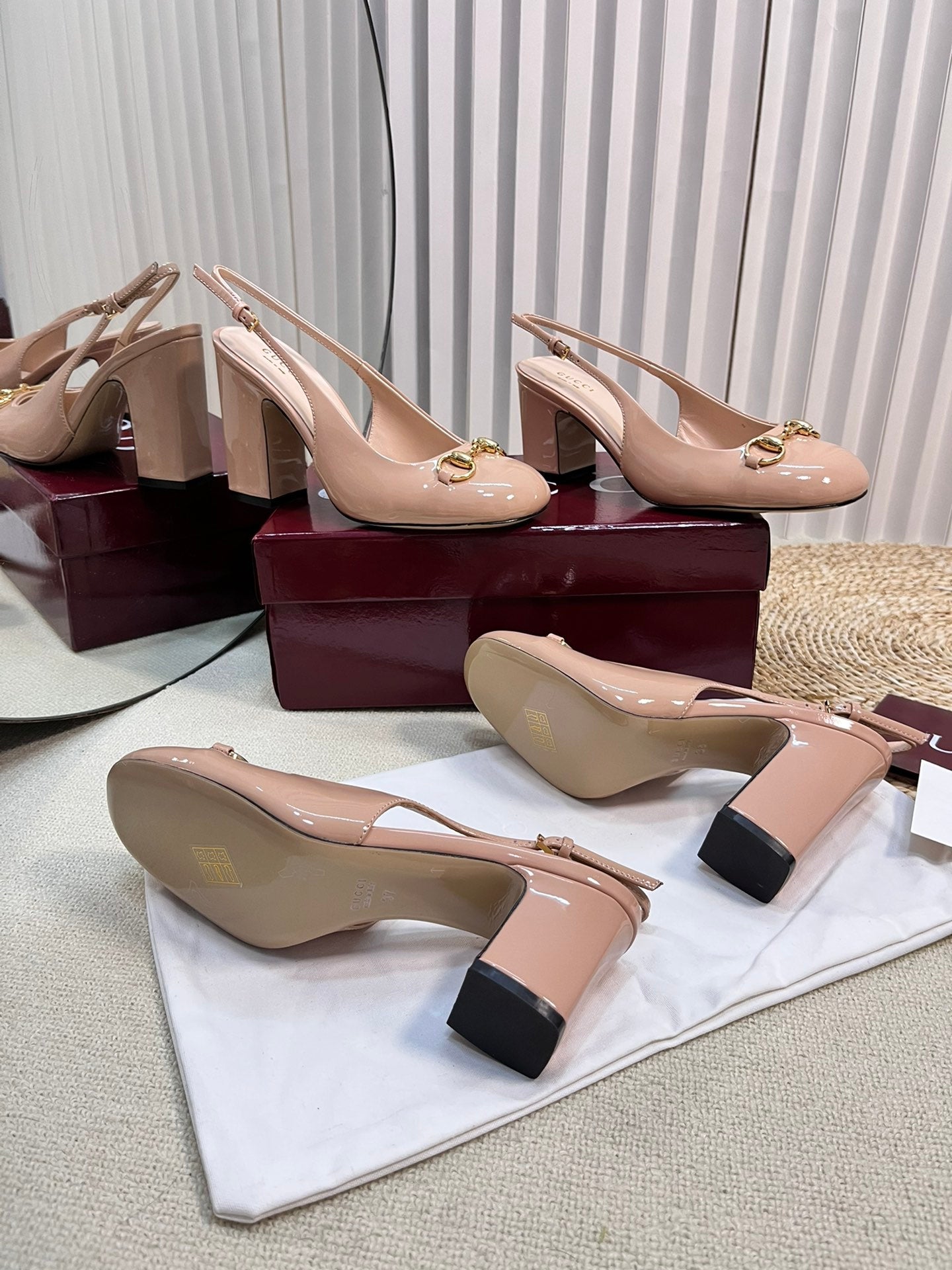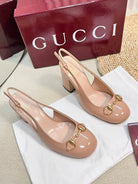 GC Horsebit Slingback 95mm Rose Beige Patent Leather 294591