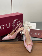 GG Horsebit Slingback 45MM Pink Ebony Monogram Canvas Point Toe Crystal-Embellished