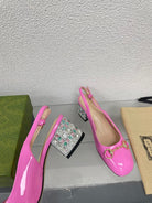 GG WOMEN'S HORSEBIT SLINGBACK IN FUSCIA PINK CALFSKIN WITH RHINSTONES