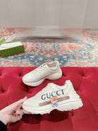 GG RHYTON TRAINER WHITE CALFSKIN WITH BEAR MOTIF