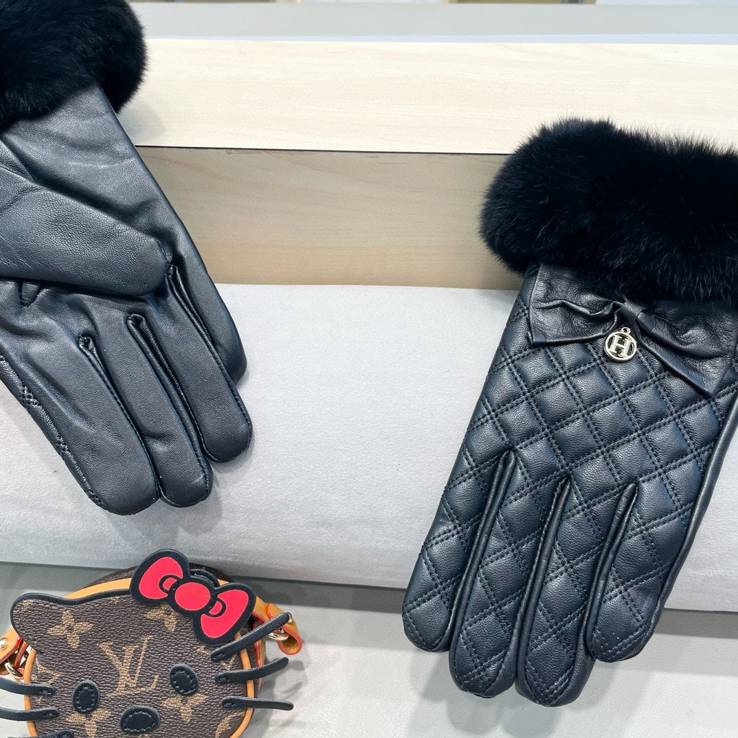 HM Glove Black Deer Skin With Rabbit Fur Lining 388638