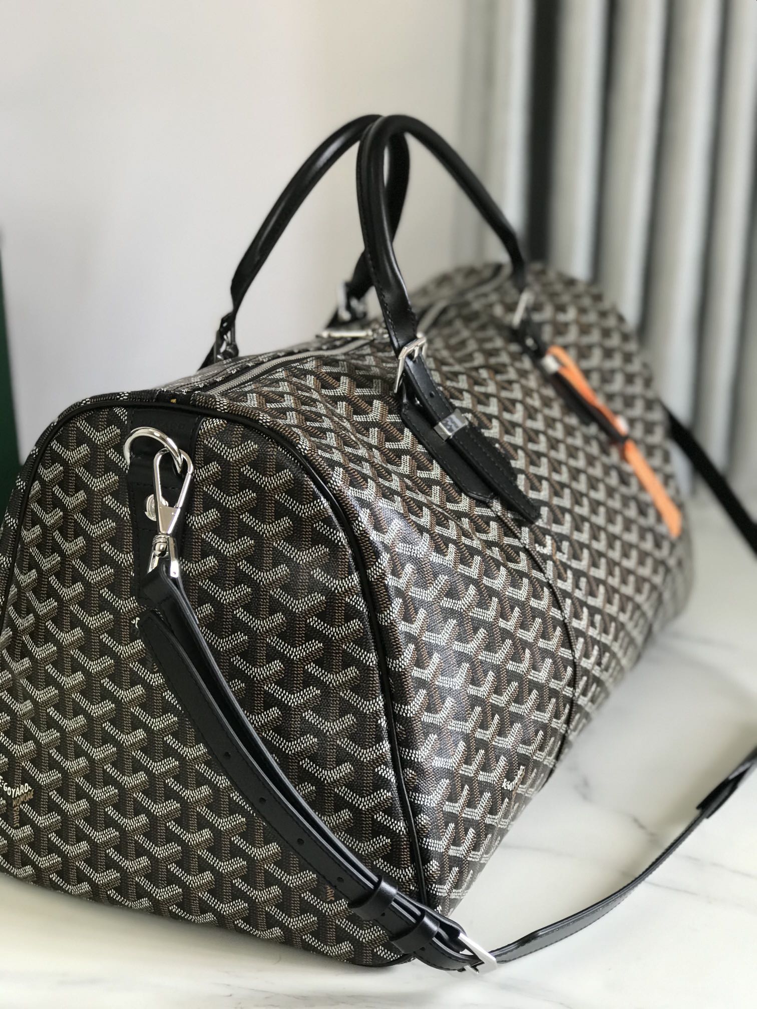 BOSTON 50 BAG IN BLACK GOYARDINE CANVAS AND CALFSKIN TRIM