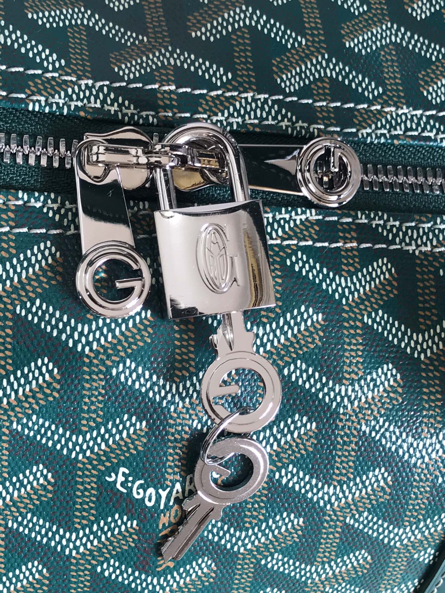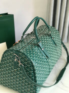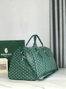 BOSTON 50 BAG IN GREEN GOYARDINE CANVAS AND CALFSKIN TRIM