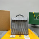 LEGER BACKPACK 37 IN GRAY GOYARDINE CANVAS WITH CALFSKIN TRIM