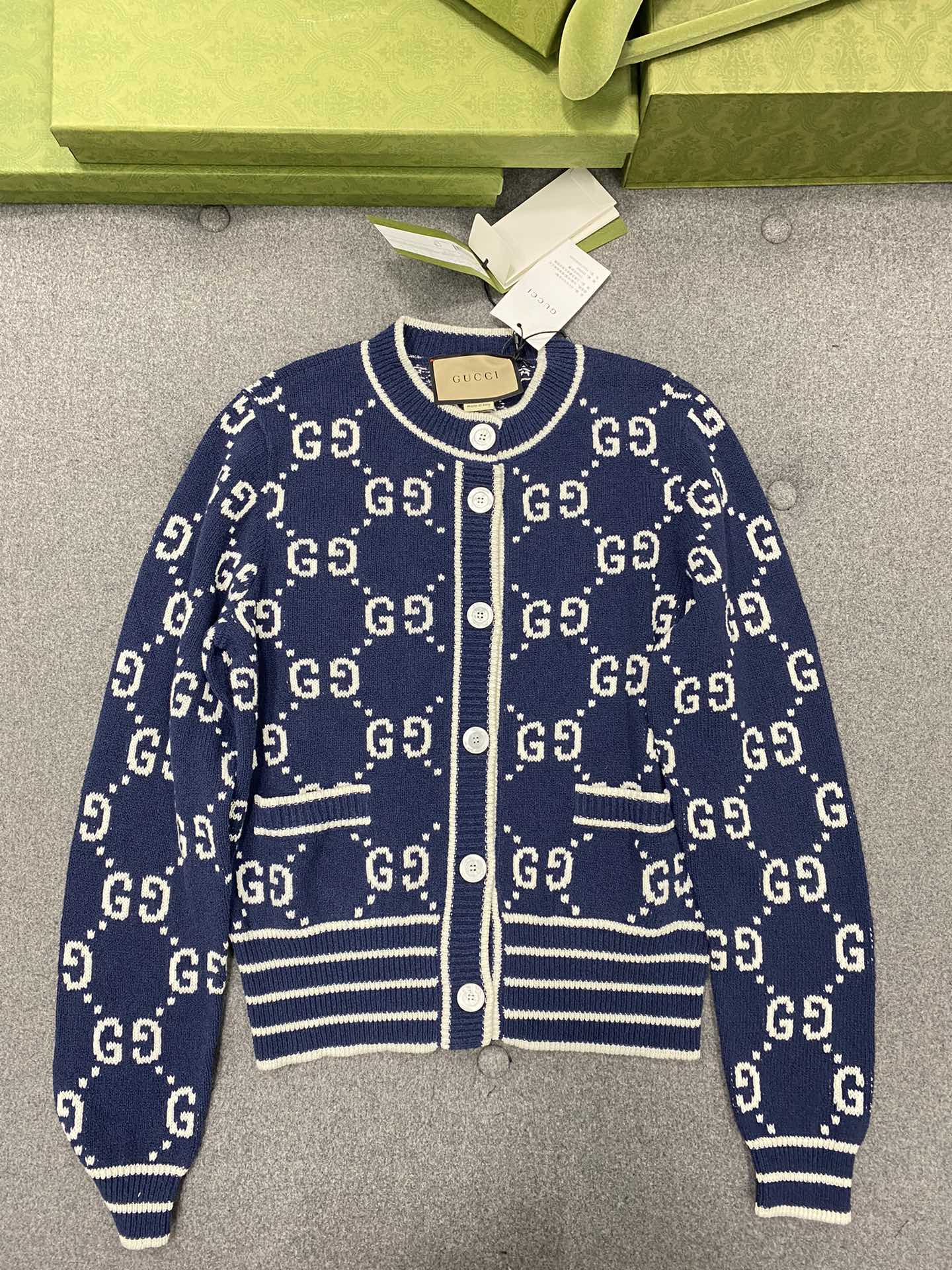GG 25 Cardigan Navy Blue Jacquard 0039
