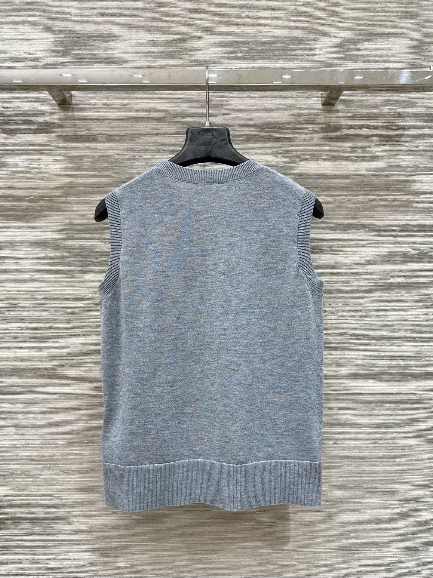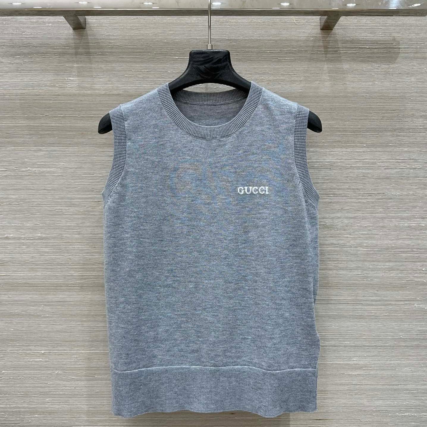Gucci 2025 Logo Embroidered Knitted Vest Top Gray Wool