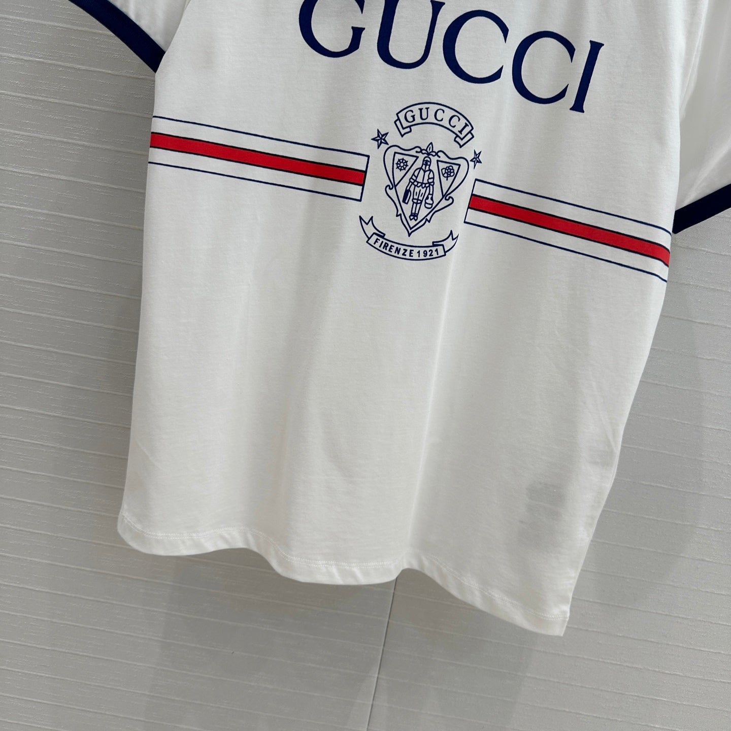 Gucci 25 Blue Letter Short-sleeved T-shirt White Cotton