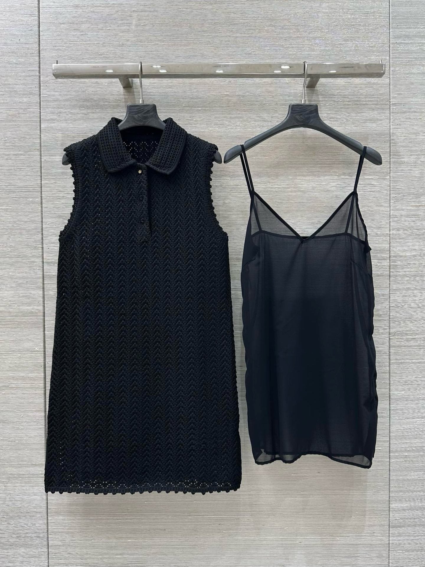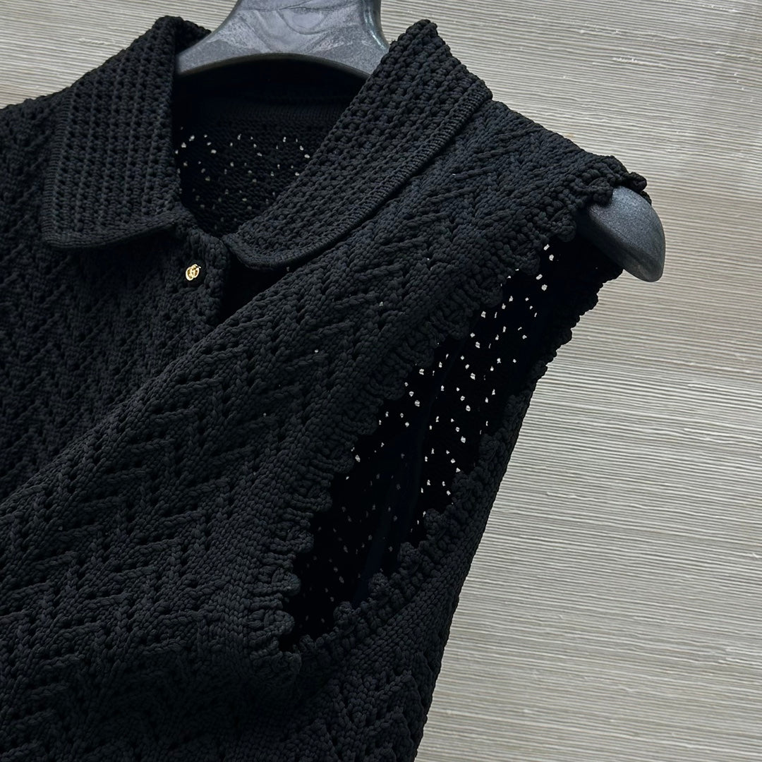 Gucci 25 Hollow Knitted Polo Vest Dress Black Polyester Fiber