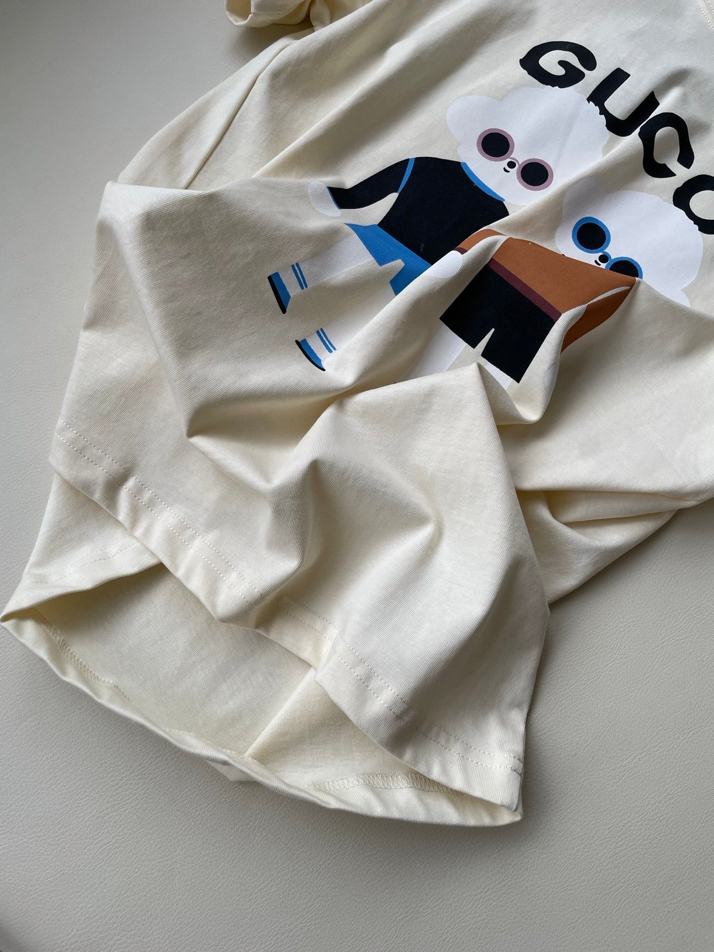 Gucci 25 Teddy Dog T-shirt Ivory Brown Black Cotton