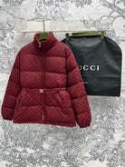 Gucci Down Jacket Red Jacquard Fabric