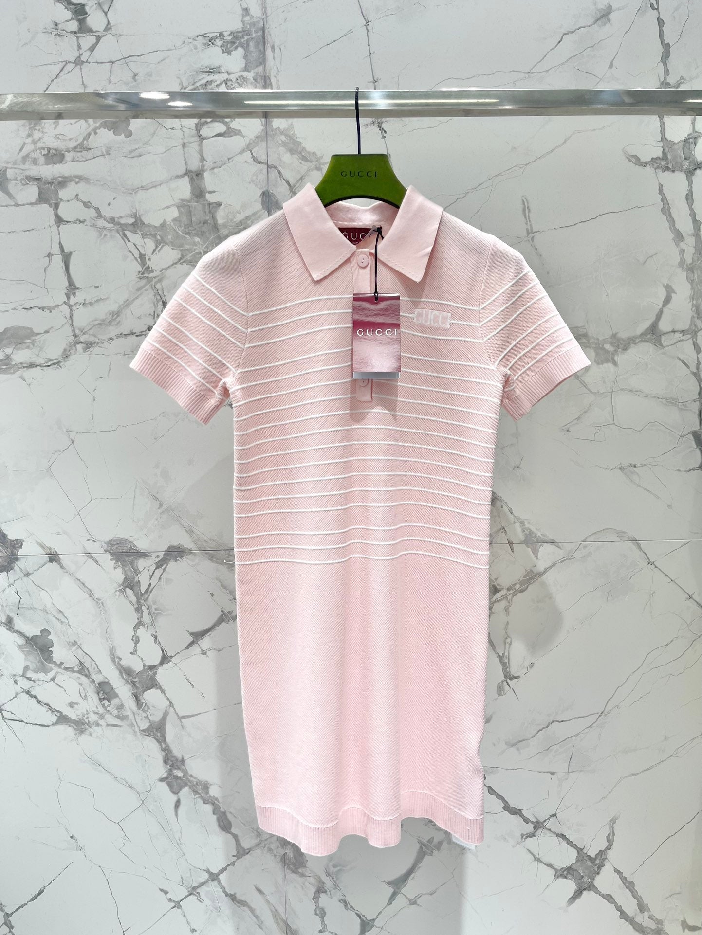 Gucci Polo Shirt Dress Pink Cotton Wool