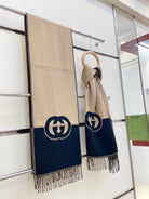 CAMEL BEIGE AND BLACK WOOL WITH INTERLOCKING G SCARF 200 CM