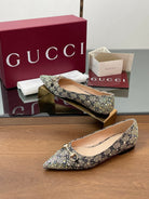 GG Horsebit Ballet Flat Beige Black Monogram Canvas Crystal-Embellished