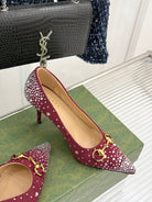 GG Pump 85 Red Ebony Canvas Crystal-Embellished