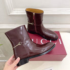 Gucci 25ss horsebit ankle boots burgundy patent calfskin 435385