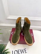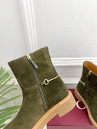 Gucci 25ss horsebit ankle boots olive green suede 435378