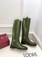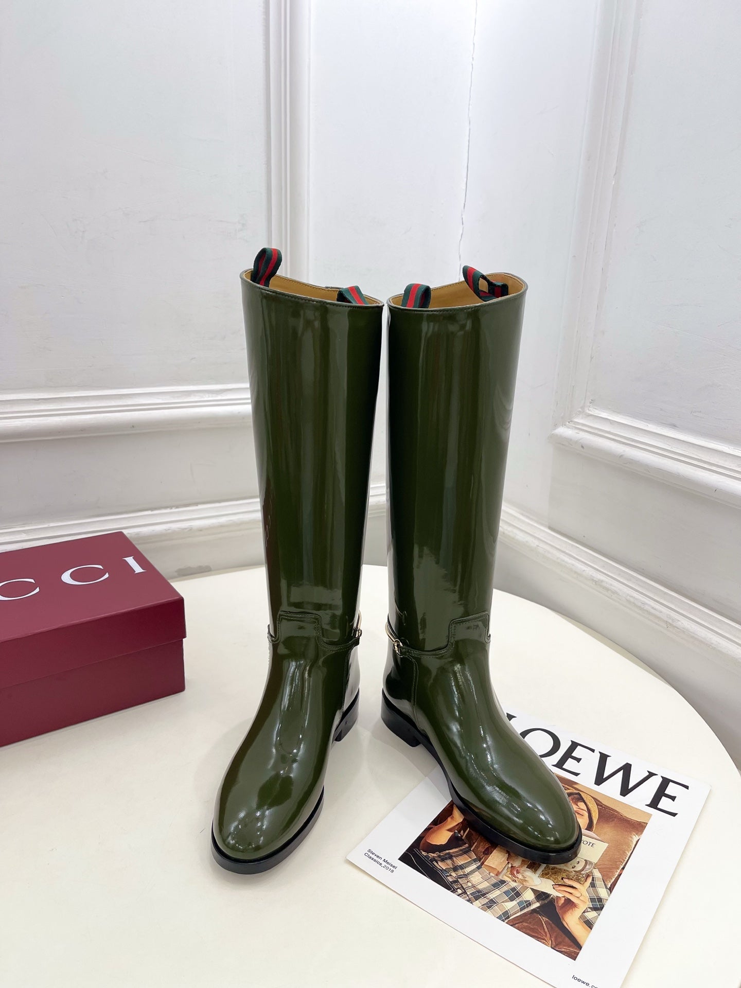 Gucci 25ss horsebit long boots dark olive green patent calfskin 435383