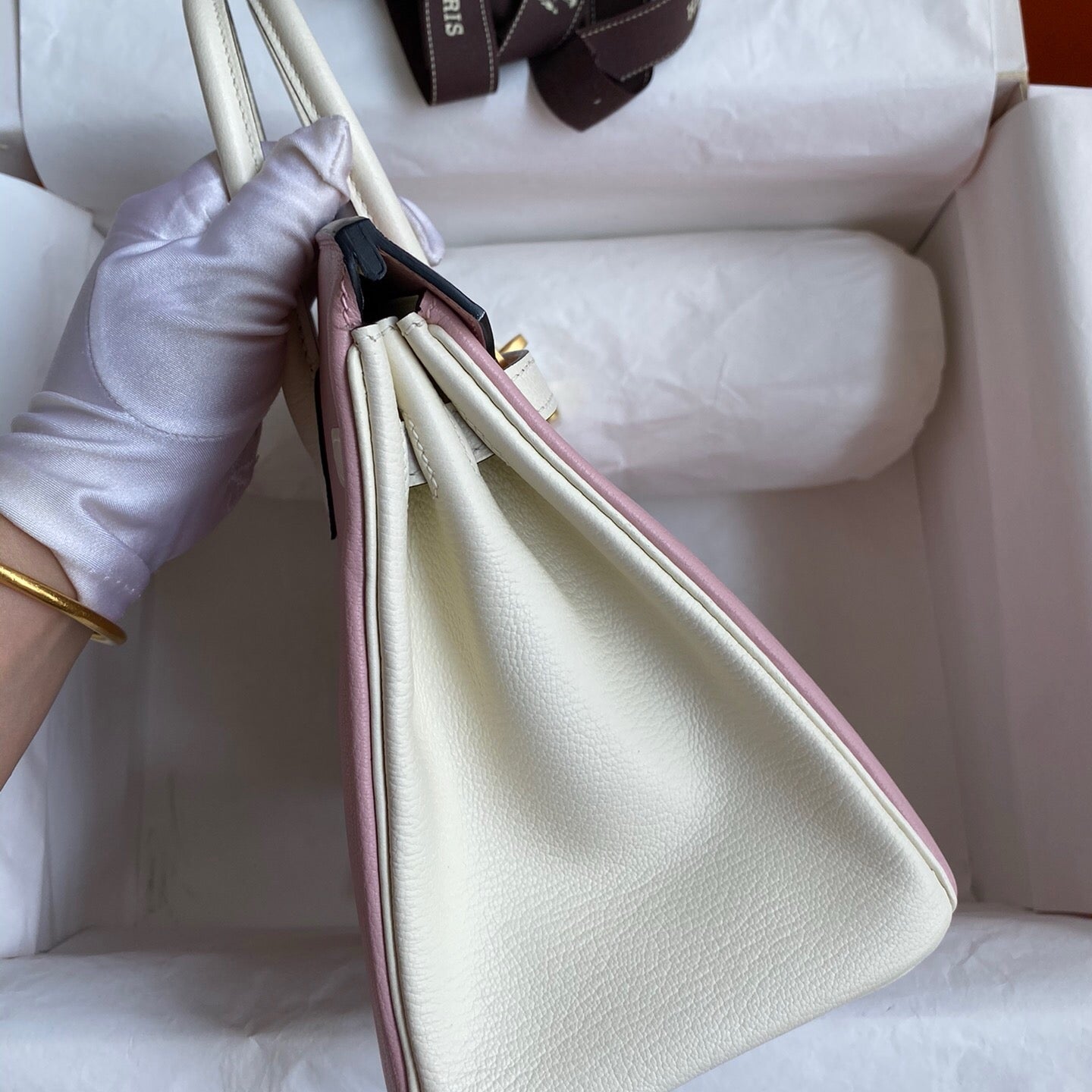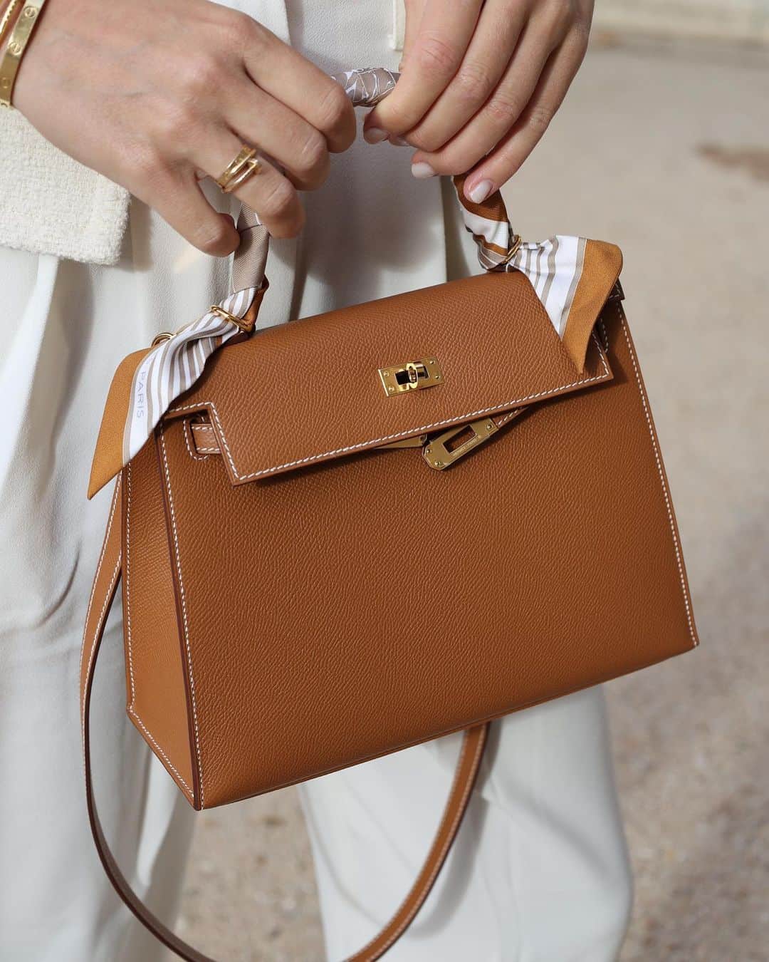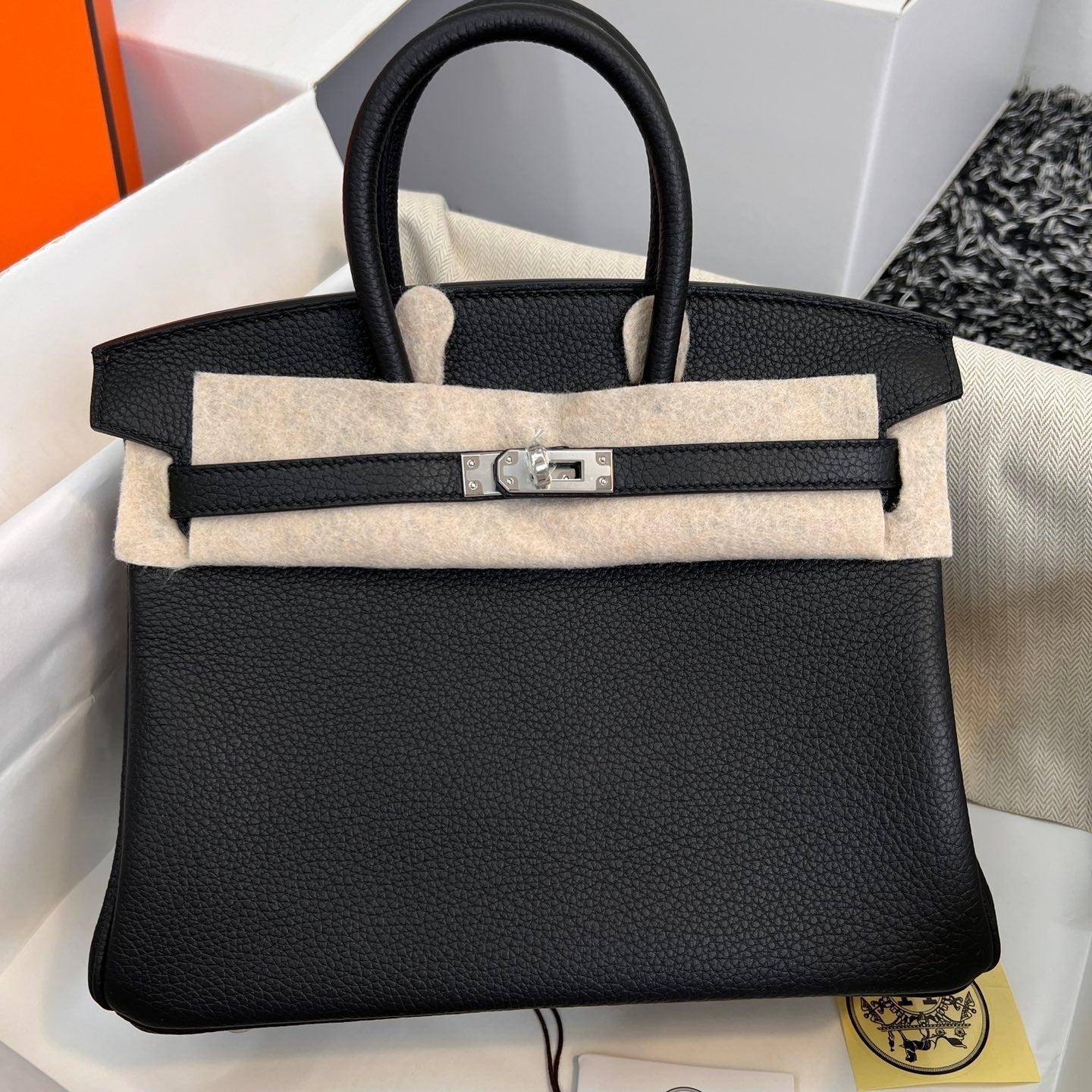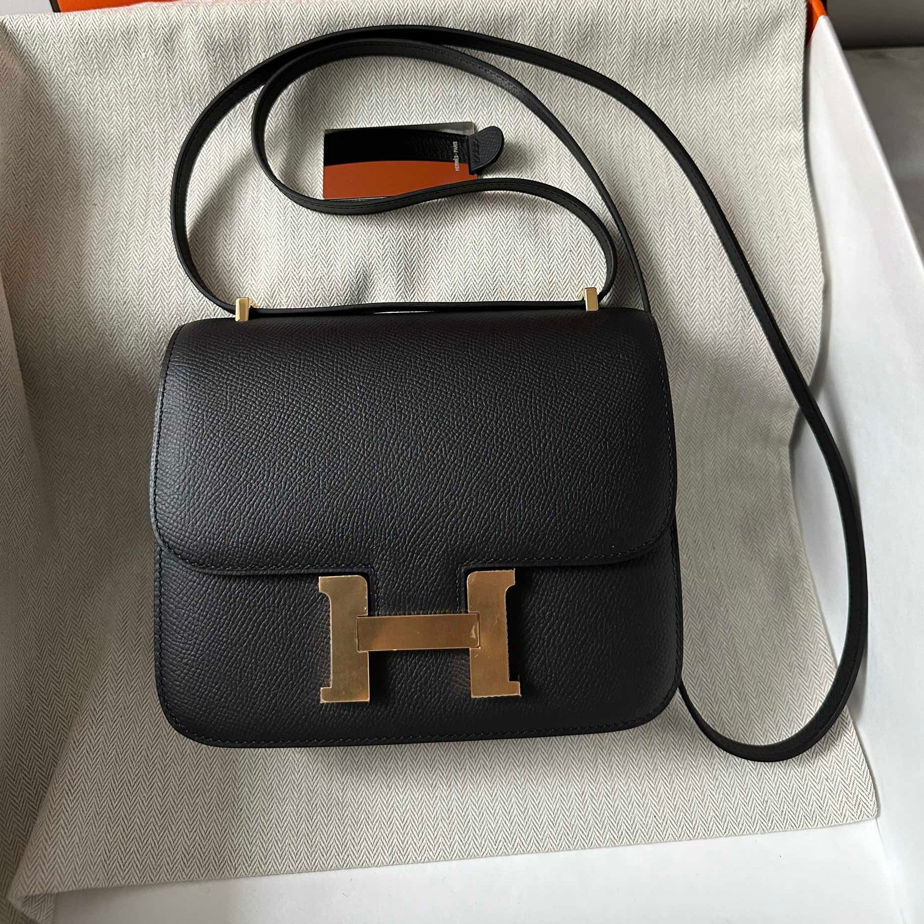 • Color: dark orange, gold hardware